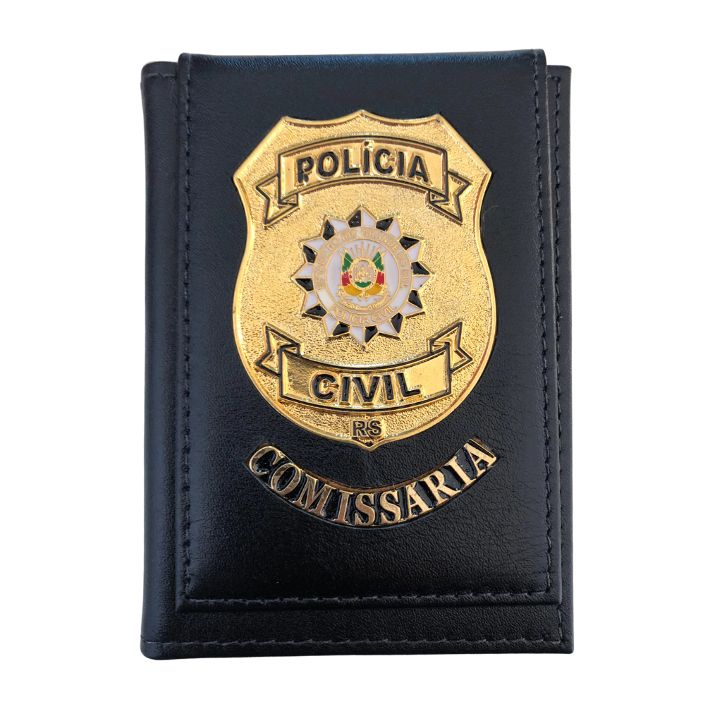 Identificação Profissional: O brasão da Polícia Civil na carteira não apenas adiciona um toque de elegância, mas também identifica você como um membro da força policial.